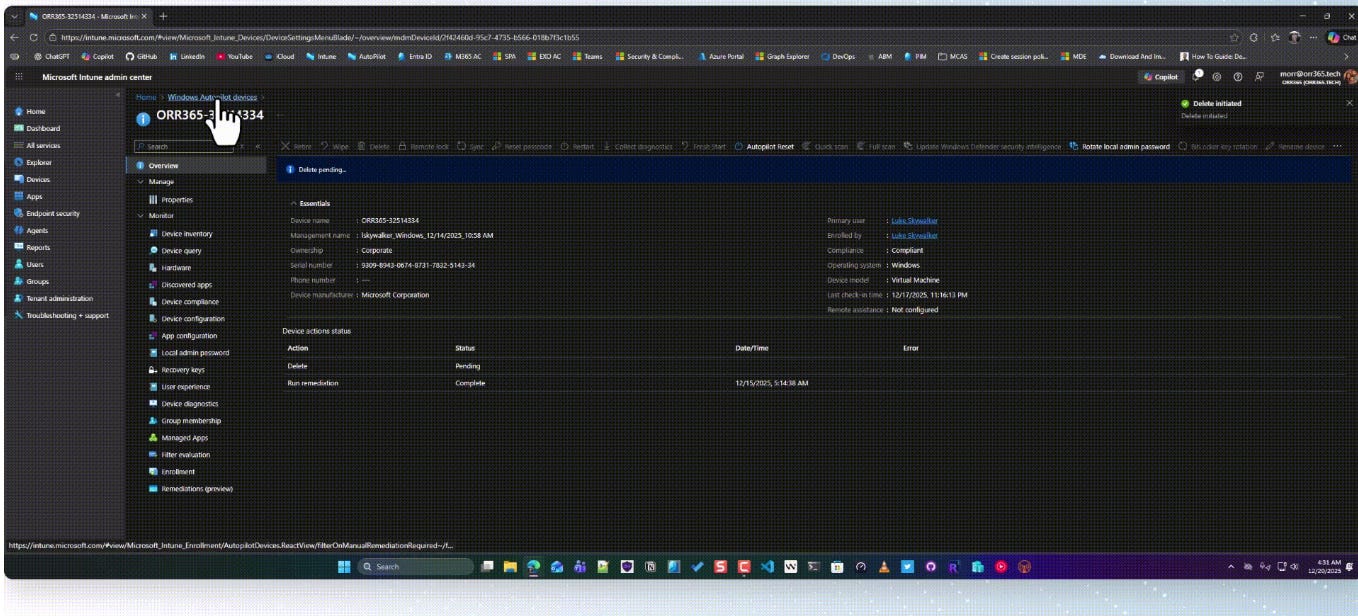 Mark Orr has an excellent blog post introducing a new PowerShell tool designed to simplify removing devices from Windows Autopilot, Microsoft Intune, and Microsoft Entra ID. The tool offers a unified interface for cleaning up device records across all three services simultaneously, featuring capabilities like serial number validation to prevent accidental deletions and a “What If” mode for safe testing.